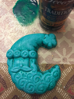 I decided to seal my plaster santa with some Americana gloss enamel before I started the aging process. I thought I could make this color look like a patina eventually. It looks like plastic now, but it will look better soon.